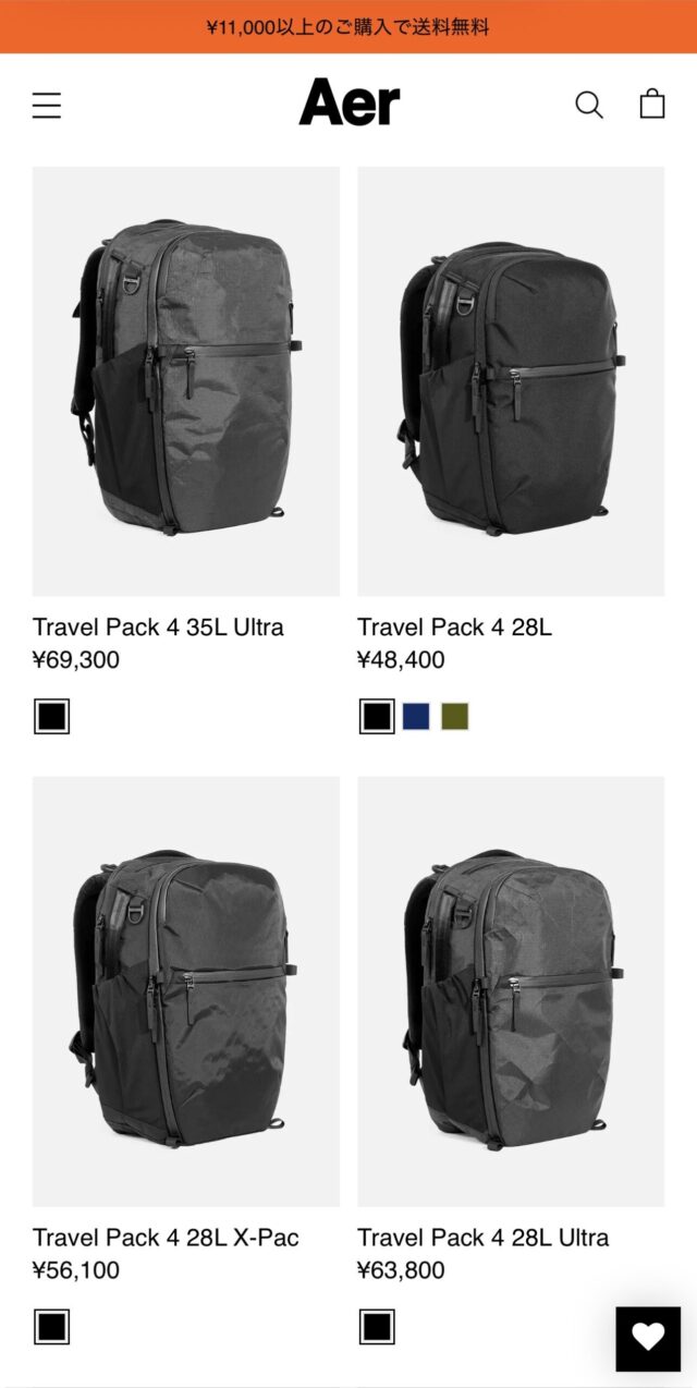 前回、試したAER Travel Pack3が小さいサイズがあります。それはTravel Pack3 smallがあります。