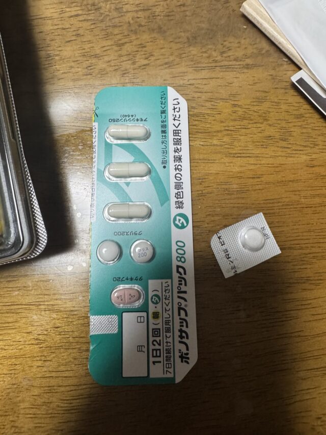 ピロリ菌 日記 X Facebook はてブ LINE コピー 2026.04.192026.04.21 会社の健康診断でピロリ菌を発見。 胃がんになるリスクがあるとかで駆除をしようかとハイ 1週間の間、朝夕薬を飲んで治すそうです。 1回でこれだ飲みますが。1つの錠剤はビオフェルミンです。胃を整える まぁ頑張ってみます。