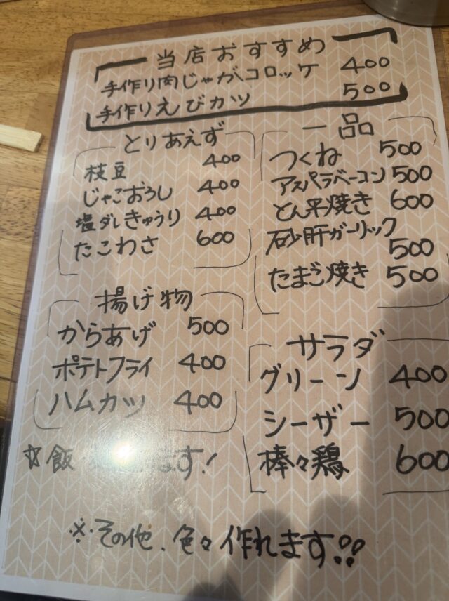 松阪にある居酒屋 千家でご飯を食べてきた。 日記 X Facebook はてブ LINE コピー 2025.11.252026.01.24 松阪駅から徒歩3分くらいの所にあるお店です。 席は6席位。女将さんが一人で切り盛りをしています。 メニュー お腹が空いていたので沢山食べます。笑 ご馳走様でした。 住所:三重県松阪市京町173-4